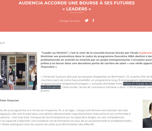 “Leader au féminin”, c’est le nom de la nouvelle bourse lancée par l’école Audencia afin de féminiser ses promotions dans le...