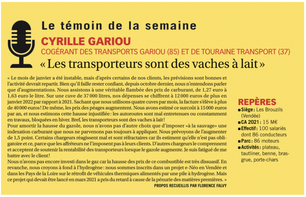 Interview publiée dans L'Officiel des Transporteurs n03097 du 4 février 2022