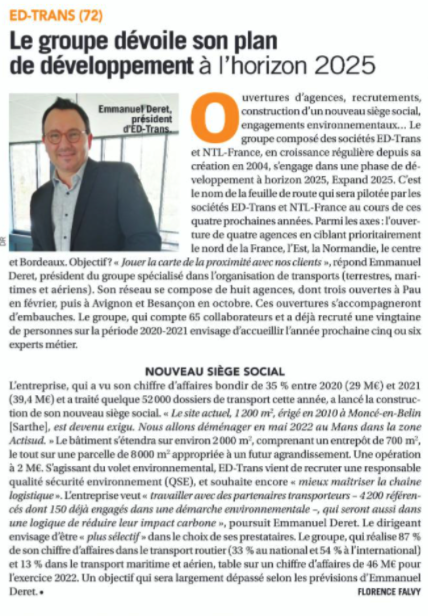 Accueil Presse professionnelle L'Officiel des Transporteurs Le groupe ED-Trans dévoile son plan de développement à l’horizon 2025