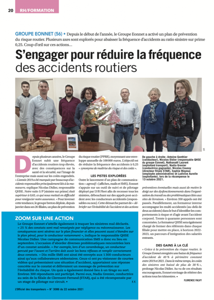 Accueil Presse professionnelle L'Officiel des Transporteurs Le Groupe Eonnet agit pour réduire la fréquence d’accidents routiers