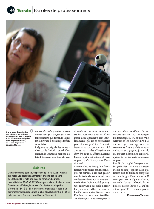 Accueil Travail photographique Paroles de professionnels : Policier en brigade des mineurs