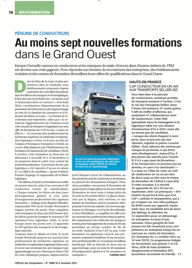 Parution dans L'Officiel des Transporteurs n°3088 du 5 novembre 2021